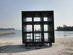 | 黒い家並みが続くアートの島 |