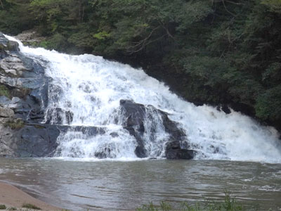 | 水量が増えて迫力のある滝。 |
