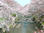 岩倉市内だけでも7.6kmの川の両岸に約1600本の桜並木が続く。川幅が狭いため、五条川は桜のトンネルを流れているかのような美しさ。川の中では、伝統的なのんぼり洗いの作業風景が見られる。桜の時期には桜まつりが開かれ、山車巡行とからくり実演など多彩な催しがある。夜桜も見事。日本のさくら名所百選。 |