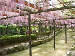 後醍醐天皇の勅願で1329(元徳元)年に建立された古刹。檜皮葺の正堂を中心に庫裏や大書院、曼陀羅堂、地蔵堂、鐘楼などが並ぶ。隣接地は曼陀羅寺公園として整備され、児童公園や放生池、屋外ステージ、休憩所の藤華庵などがある。そして「曼陀羅寺の藤」は早咲きから遅咲きまで12種類60本の藤が咲き、4月下旬から5月上旬まで「藤まつり」で賑わう。 |