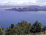 湖を囲む外輪山の南端付近で標高631m。湖面からは約250mの高さがある。実際の展望台は頂上ではなく、しばらく湖側に下った所。ここからは、十和田湖の眺めが素晴らしい。湖に突き出た中山半島と御倉半島が右手に見え、眼下には十和田湖の西湖が広がる。遠くには八甲田の山々も眺められる。 |
