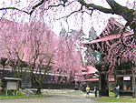 桧山城跡の中腹にある多賀谷氏の菩提寺。当初は下総国に創建されたが、多賀谷氏と共に1610(慶長15)年に移った。現在の本堂は1772(明和9)年の再建。立派な山門やこの地方では珍しい鶯張り廊下が知られる。本堂裏には銀閣寺を模したとされる庭園がある。本尊の不動明王像は室町末期の作。例年4月下旬には、本堂前のしだれ桜が美しく咲き、花見客で賑わう。 |