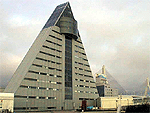 正三角形の外観が目を引く地上15階、高さ76mのビル。青森県の観光と物産の情報基地。青森県の観光が360度マルチスクリーンで上映されるパノラマ館や、ライドで進むエネルギー館、展望台などの設備がある。また、回転展望レストランなどの各種飲食店や物産プラザ、県観光総合案内所なども。 |