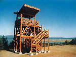 十三湖の南側、標高64mの高台。木製の展望台からは、北側に緩やかに弧を描いて広がる十三湖や砂州で隔てられた日本海や遠くに権現崎、西側には遠浅の海岸が延々と続く七里長浜、南側には松林が続く屏風山、岩木山や豊かな田園風景など、津軽半島のさまざまな風景が360度にわたって見渡せる。県道12号線に道標があり、そこから約1.3km。 |