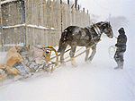 津軽の厳しい冬を町おこしのイベントとして成功させ有名になったツアー。ツアー。モンペに角巻き、カンジキといった昔ながらの格好で、白一色の雪原を歩く。そして、馬ソリ馬車に乗車し、昼食は郷土料理・津軽じゃっぱ汁定食。もちろん地吹雪になるかどうかは運次第。1月下旬から2月中旬に7回程。要予約。 |