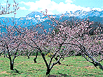 果樹園の花が一面に咲く春はまさに桃源郷 |