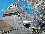 1715(正徳5)年にヨシノザクラ25本を植樹したのが始まりで、現在ではソメイヨシノを中心に、シダレザクラや八重桜など豪華絢爛約50種類2600本の桜が咲き誇る素晴らしい眺め。毎年4月23日から5月5日までさくらまつりが開催される。ライトアップで浮かび上がる夜桜も実にきれい。天守から見下ろす桜は贅沢気分。日本さくら名所百選。 |