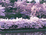 1598(慶長3)年の盛岡城築城で治水のために設けた4ヶ所の堤のひとつで、最も大きかった中堤が高松の池として残った。桜は1906(明治39)年に日露戦争の戦勝記念で植えたのが始まり。ソメイヨシノを中心にシダレ桜や里桜。岩手山や姫神山を背景に咲く桜は見事。夜桜も楽しめる。様々な花が咲く公園として親しまれ、冬には白鳥が飛来し越冬する。日本さくら名所百選。 |