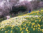 水仙と桜、丘の公園を彩る見事な花の競演 |