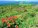 山頂付近一面が真紅に輝くツツジの大群落 |