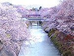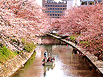富山市街の中心地を東西に流れる。今は小さな川だが、かつての神通川川筋を今に伝えている。春は川の両側を見事な桜の花がつつみ、多くの人が訪れる。遊覧船が出ており、編笠姿の船頭が漕ぐ笹舟に乗ると、川面からの風情はまた格別。舟遊び気分が味わえる。松川七橋めぐりと滝廉太郎記念館めぐりの2コースで、予約制。花見期間中は予約なしでも乗船可。乗り場は城址公園内の松川茶屋。 |