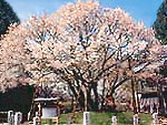 三門を抜け、杉木立の中に続く287段の急な石段・菩提梯を登る。祖師堂の前にあり、高さ15m、樹齢は約400年。薄紅色の花をいっぱいにつける見事な巨樹。歴史を刻む数々の建物と共に迎えてくれる。また30本のシダレザクラと数百本のソメイヨシノも。見頃は4月上旬。 |