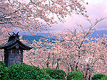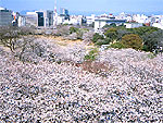 都城市街の西方、丘陵地にある桜の名所。知られる公園。麓の横市から見晴らしのよい母智丘神社まで約2kmの参道に約2600本もの桜並木が続く。風格ある巨樹で花がぎっしり、これは見事。夜桜や母智丘頂上からの眺めも格別。シーズン中には「都城もちお桜まつり」が開催される。日本のさくら名所百選。 |