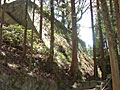 | 標高1,159mで、山頂近くに大船神社が鎮座する。昔は、山岳修験道が盛んだった。本殿は彫刻が見事。神社の左手奥に弁慶杉がある。樹齢760年、樹高40mの堂々とした巨木だ。また、神社までの参道は約4kmに及び樹齢200年程の松並木が続いている。 |