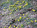 上矢作中心街から国道418号線を約5km、急峻な山が迫る達原・大平地区にある。棚田の斜面に黄色い花を咲かせてくれる。見頃は3月中下旬。 |