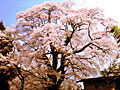 岩村から中津川に向かう国道363号からもわかる枝垂れ桜。吉田川経塚の横にあり、田園の中に1本だけ立つ姿が美しい。見上げると空から桜があふれているよう。一部の枝は道まで垂れ下がっている。 |