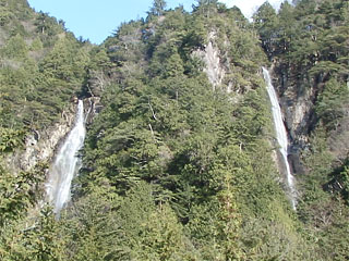 | 夫婦滝の展望。本道から逸れた高台より2筋の滝を遠望できる。 |