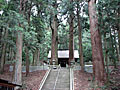 恵那山を祭った古代からの神社。江戸初期には恵那山頂の祭神を祭り、前社となった。荘厳な雰囲気で、拝殿前左右に真っ直ぐ伸びた夫婦杉が印象的。樹高46mと47m、樹齢推定600〜800年。社殿と見事に一体化している。 9月の例祭では淡路から伝わった恵那文楽が奉納される。神社前ののどかな風景も美しい。 |