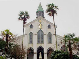 ![]() 大浦天主堂 現存する天主堂の中でも古い部類に入る。ステンドグラス等は原爆で破損したもので改修されたが、それ以外のものは創建当時のままだった。 |