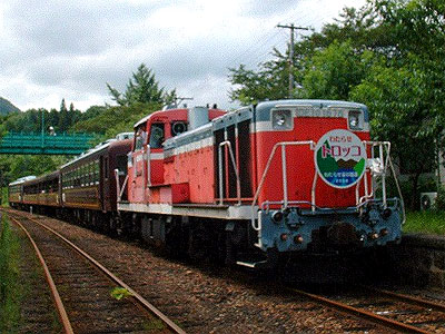 | 桐生から大間々まではレールバス わたらせ渓谷鉄道の旅に行って来たよ。桐生から出発。まずは乗ってお得な「1日フリーきっぷ」(1,800円)を買ってっと・・・おっと、大間々駅から乗り継ぐトロッコ列車の整理券も確保しないと。2両編成のレールバスは、遠足だか林間学校だかの小学生でいっぱい。東武鉄道との接続駅・相老でさらにお客が乗ってきて、「トロッコ列車」の乗換駅・大間々まで一緒だったよ。 鉄道ファンに嬉しい大間々駅 昔ながらの「硬券入場券」は売っているし、構内に検車区があることから、予備のレールバスが停車して整備を受けていた。また、トロッコ列車「わたらせ渓谷号」が走らない冬場に運転される、お座敷列車「サロン・ド・わたらせ号」が停車していたので、思わずシャッターをパチリ。この列車、かってのJRの高崎にいたとか。今度は冬場に来て、この列車に乗ってみたいな。 トロッコ列車から渡良瀬川の風景 目的のトロッコ列車「わたらせ渓谷号」は、離れた専用のプラットホームからの発車。かっての京王5000系電車を改造したものを2両、元・国鉄の客車2両でサンドイッチしてディーゼル機関車で牽引する。これで足尾まで行くんだ。観光客やツアー客、林間学校の小学生でほぼ満員状態。小学生達は、さっそく持参の御弁当を広げていたよ。国鉄の客車には冷房が効いているけれど、やはり皆、トロッコに乗りたいんだろうな。車内販売では、アイスキャンデーがよく売れていたよ。原材料に「こんにゃく粉」が入っていたのが、何とも群馬県らしかったな。 定刻にDE10型ディーゼル機関車は汽笛を鳴らして、渡良瀬渓谷の旅に出発。すぐに緑と渡良瀬川の清流が目に飛び込んできたよ。かっては足尾銅山の鉱毒で「死の川」とまで言われた渡良瀬川だけど、1973(昭和48)年に足尾銅山が閉山、少しずつ自然が戻り、今では清流の美しさを取り戻した。清流から吹いてくる風は気持ちいい。お客さんの中には、空いている前後の客車に乗り込んで沿線の風景をカメラに収めていたよ。やはり、のんびりゴトゴトと行く汽車旅っていいねぇ。 やがて列車は神戸(ごうど)駅に到着。本当は終点の足尾まで乗りたかったけれど、目的地のひとつはこの駅が最寄りだから途中下車。トロッコ列車のフル編成を、ハイ、パチリ。 列車レストランで「食堂車」気分 神戸駅には列車レストラン「清流」というのがあって、食事とか喫茶が出来るんだ。なぜ「列車レストラン」なのかって?それはね、元・東武鉄道の「DRC(デラックス・ロマンスカー)」1720系の車両を使ったレストランなんだ。その車内は、日光や鬼怒川温泉へ走っていた時のままで、まるで「食堂車」で食事をしているみたい。メニューも「きのこそば」とか「きのこカレー」なんて、地場産品を使ったメニューが多いよ。勿論、コーヒーとケーキもおいしい。ここで、お昼にしよう! 希望に満ちた美しい絵画 富弘美術館へはバスで行くことに。バスの運転手さんも親切で「行って帰るなら、一日券の方がお得だよ」とお得な方を勧めてくれる。人情たっぷりのところだね。走っている時、「ここが富弘さんの出た学校だよ」とか、いろいろ教えてくれた。 星野富弘は、元は中学校の体育の先生。ところが、体育の指導中の事故で手足の自由を失ってしまった。それでも懸命のリハビリで、口に筆をくわえて、美しい花の絵を描き、人を感動させる詩を書いている。常に希望を持っている人だね。ちなみにここの美術館、わたらせ渓谷鉄道の「1日フリーきっぷ」を見せると、入館料が割引になるんだ。どんな時にも希望を忘れない、そんな星野富弘さんを見習いたいね。美術館というと、堅苦しい、見ていて疲れる、という場合もあるけど、ここはそんなことないね。小学生からお年寄まで、気軽に見られる、そんな美術館だよ。 ここのカフェがまた、素敵なんだ。窓の外には草木ダムが見えて、お茶を飲みながらくつろぐには最高の風景だよ。この草木ダム、317万トンもの水を蓄える事が出来る「首都圏の水がめ」なんだ。発電に使われたり、農業用水に使われたり、といろいろ活躍しているんだね。 渡良瀬川を見ながら露天風呂 そして神戸駅に戻り、レールバスで水沼駅へ。ここには「水沼駅温泉センター」というのがあって、ここでも「1日フリーきっぷ」を見せると、入場料が割引になる。渡良瀬川の渓流を見ながら入る露天風呂、最高だね。駅に温泉がある、というのも珍しいし。湯上りには食事したり、カラオケが歌える大広間もあるんだ。中には1日いる人もいるらしい。 本当はもっとゆっくりしたかったんだけど、列車の時間の都合があるから、ここらへんで帰ることに。 夕方で、レールバスはいっぱいだったよ〜。 (2006.8) わたらせ渓谷鉄道 富弘美術館 |
