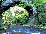 (写真)帝釈川の浸食で形成された天然橋・雄橋 |