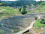 急斜面に続く324枚の田、標高450〜500m、広さは12.7haで田を支える石積みがも見事。展望台や休憩所、トイレが整備され、見物客に便利。昔の田植えを再現するなど定期的にイベントが開かれ、伝統的農法の継承と棚田の保存に力が注がれている。日曜には青空市が開かれる。日本の棚田百選。 |