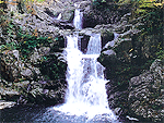 三段滝などの滝や深渕、断崖が続く見事な渓谷 |