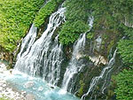 白金温泉の近くで、湧水が幾筋もの白い流れとなって白金小函の渓流に落ちる美しい滝。落差は約20m、幅約40m。水は火山性成分を含み河床は白く水は鮮やかなコバルトブルーでとても美しい。この付近の美瑛川はブルーリバーとも呼ばれている。白金温泉公共駐車場から徒歩約5分。また、近くには白金不動の滝があり、遊歩道を散策しながら白金温泉から約20分で行ける。 |