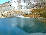 噴煙上げる旭岳の姿が湖面に映ることから名づけられた。旭岳ロープウェイ・姿見駅を起点に約1.7kmの遊歩道で一巡すると、いくつもの噴煙が立ち上る地獄谷、鏡池と擂鉢池の夫婦池などへも行ける。夏はチングルマ、キバナシャクナゲなど高山植物が一面に咲き、秋の紅葉は表現しようもない美しい色彩の世界が広がる。第1から第5までの展望台からは大雪山系や十勝岳連峰、夕張岳など周辺の山々の展望も広がる素晴らしい眺め。 |