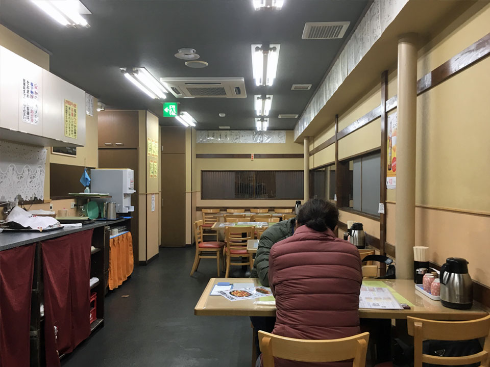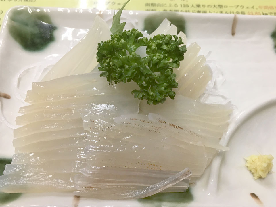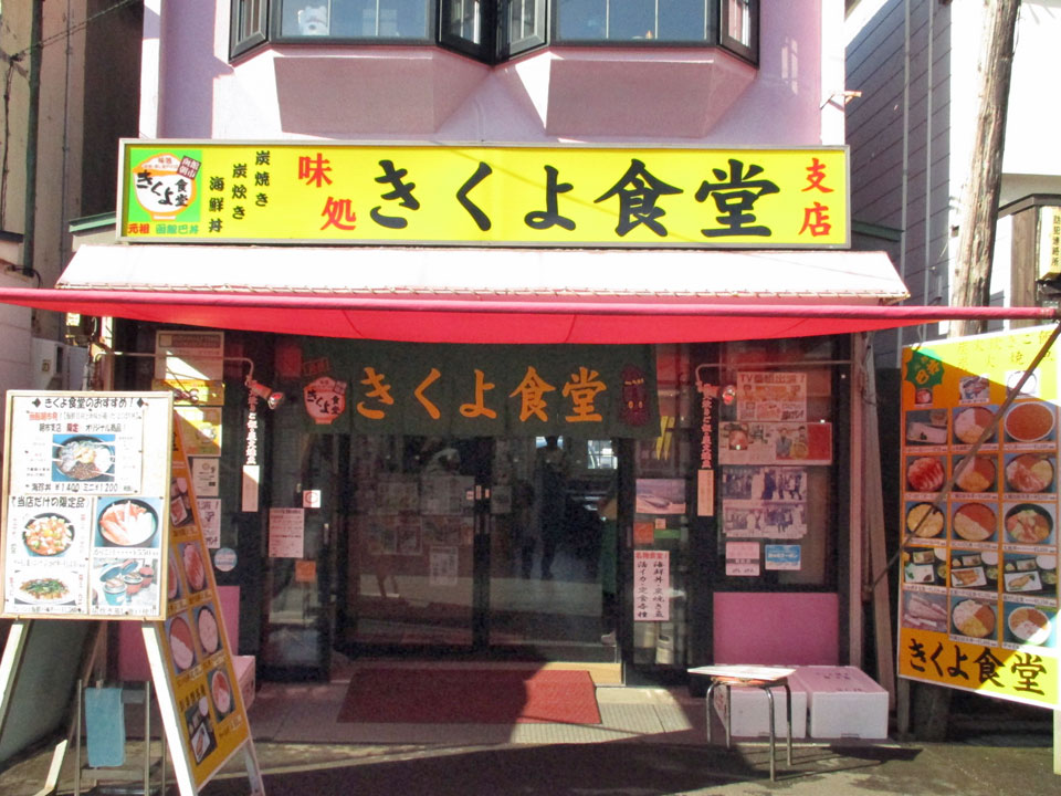 | 海鮮を味わえる飲食店も多い函館朝市の中でも人気店。黄色い看板が目印、創業1956(昭和31)年の老舗。 |