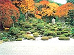 応安年中(1370年頃)に覚応が廻国し、極楽寺を正照寺と改めた。1544(天文13)年に祈願所となり、1602(慶長7)年に萬徳寺と改称。白砂が敷き詰められた枯山水庭園は主要部でも1800uと広い。北国庭園として地方色豊かな江戸時代初期の名園。ツツジや新緑、紅葉などと共に季節の色彩が美しい。若狭彦神社から南へ約1km。紅葉の見頃は11月中旬頃。庭園は国の名勝。