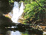 夏井川に注ぐ江田川の渓谷で、約500mの高度差をわずか10km程で下る。激しい流れの中にも瀞も見られ、絶壁が続き奇岩や大小の滝など変化に富んでいる。背戸峨廊の名付け親は詩人・草野心平。峨廊は岸壁が屹立した様子の意。シダ類や鳥類、昆虫の宝庫で、探勝路でじっくり観察したい。 |