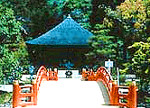 1160(永暦元)年に国主・岩城則道の妻徳尼によって、平泉の金色堂にならって建立されたと伝わる。浄土庭園の池の中央に立ち、風格があり曲線を描く屋根など美しい外観。国宝。 |