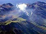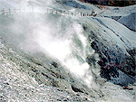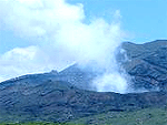 赤茶けた山肌がむき出しとなり硫気が噴出