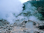 渓谷脇の岩盤から轟音と共に蒸気が噴き出す奇勝 |
