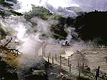 渓谷脇から熱湯が約20m噴き上げられる奇勝 |