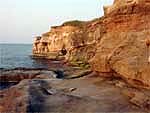 加賀海岸で最も日本海に突き出た岬で、先端からは左右にパノラマが開ける景勝地。主要道から少し離れているため静かなところ。岬へは駐車場から徒歩3分程。海岸に沿って自然遊歩道や灯台があり、海水浴場や釣り場としても人気がある。 |