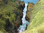 間口5m、奥行き約100m程の細長く深い入江で、断崖に囲まれており迫力がある。頼朝の追手から逃れ奥州に向かう義経・弁慶一行が荒波を避けるためこの入江に48席隻の船を隠したといわれる。ここからヤセの断崖へは徒歩約3分と近い。 |