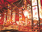 1685(貞享2)年には記録がある大地主神社(オオトコヌシジンジャ)伝統の祭。神饌を青柏の葉に盛って神前に供えることが名の由来。山車は「でか山」と呼ばれ、高さ約12m、重さ約20tと国内最大級。上部に舞台をしつらえ2mを超す人形で歌舞伎名場面を再現、各山町から奉納される。開催は5月3日〜5日。青柏祭の曳山行事として国の重要無形民俗文化財。 |