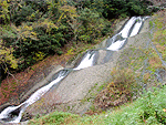 男女滝川の本流に流れる滝が女滝と、支流にかかる男滝からなる。門前町から間垣の里や西保海岸に抜ける県道沿い。女滝は、甌穴が形成された岩の上を滑るように何段にもわかれて流れる落差35mの美しい滝。県道から全景を望める。男滝は、女滝に比べ細い急な流れ。 |