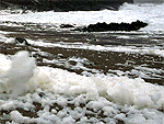 厳冬の能登、荒波が砕け泡となって舞う自然現象。岩礁に激しく打ち寄せた日本海の荒波が泡となり、強風によってひきちぎられて舞い上がる。わかりやすい場所なら、能登では曽々木海岸や仁江海岸付近などで見ることができるポイントがある。曽々木海岸には海蔵寺住職が昔造った道が海岸線に続き、現在では波の花遊歩道として波の花鑑賞ポイントになっている。 |