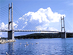 能登島と能登半島を結ぶ2本目の橋で、全長620mのつり橋。この橋の開通で、能登島から奥能登へ向かうのに一層便利になった。橋上からは穏やかな七尾湾の景色が美しい。 |