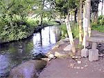 常堅寺の境内裏を流れる小川。淵という感じではないが、茂みの中に澄んだ水が流れている。かつて多くのカッパが住んでいて、人々にいたずらをしたという伝説が残る。遠野にはカッパ伝説が残る場所が点在。岸辺には、お乳の神様・カッパ神が祭られている。裏手は、「炎立つ」で知られる阿倍貞任一族の屋敷跡。 |
