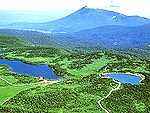 八幡平アスピーテライン沿いで、八幡平からの溶岩が川をせき止めて形成された。5月から9月にかけて高山植物が咲くが、初夏は特にニッコウキスゲやハクサンチドリなど一面の花畑。鑑賞台からは湿原を見渡せる。すぐ近くには「熊の泉」と呼ばれている水場もあり、格好の休憩地となっている。ダケカンバやナナカマドの紅葉はとても鮮やか。 |