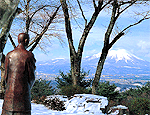 白い洋館風の建物は、啄木が詩に託した理想の「家」がイメージ。啄木文学の揺籃、あこがれの世界、林中の生活、北への漂白、東京時代の5コーナーで構成され、啄木直筆の書簡やノート、遺品などが展示されている。啄木関連図書も充実。敷地内には、啄木先生が教壇に立った渋民尋常高等小学校と、当時の下宿先・斉藤家が移築されている。また、岩手山を背景に啄木先生と子供達のブロンズ像が立つ。 |