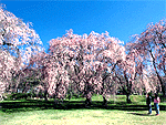 米内浄水場の場内にあり、開花時のみ一般開放される。盛岡市内の桜が終わってから満開を迎える。浄水場開設時に植えられた古木を含めヤエベニシダレヒガンが30本、ヒガンザクラが10本。八重咲きのヤエベニシダレは見事な花色で豪華。特に約10本の古木は枝が長く実に見事。例年の見頃は5月上旬。 |