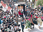 義経主従が兄・頼朝からの追討から逃れ平泉にたどり着き、秀衡をはじめ住民に歓迎で迎えられた話を再現した時代絵巻。毛越寺から中尊寺まで華やかな行列が進む源義経公東下り行列をはじめ、稚児行列や中尊寺能・白山神社祭礼、毛越寺延年の舞、弁慶力餅競技大会、郷土芸能、能や狂言など様々な行事が続く。5月1〜5日。また、11月には秋の藤原まつりがある。
