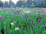 藤原氏の栄華の面影を感じる平泉。毛越寺庭園は浄土の世界を現世に表現した浄土庭園。平安時代の庭園技法が残された貴重なもの。大泉が池で約300種・約3万株が咲き誇る。1953(昭和28)年に町民の意見で植えたのが始まり。見頃の6月下旬から7月中旬には「あやめまつり」が開催される。 |