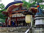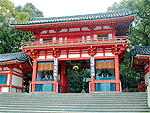 厄除け、商売繁盛の神として広く信仰を集め、「祗園さん」の名で親しまれている。本殿は寝殿造様式による珍しい神社建築で、1654年に4代将軍徳川家綱の寄進によるもの。7月の祗園祭はこの神社の祭礼。大晦日のおけら詣りも有名。全国に約2900社を数える八坂神社の総本社。 |