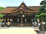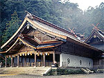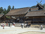 因幡の白兎や国譲りの神話などで名高い大国主大神が祭られている。境内は2万7000平方mと広大、本殿は日本最古の神社建築様式である大社造り。現在の社殿は1744(延享元)年に造営された。神楽殿には長さ13m、太さ8m、重さ5tと日本一の大きさを誇る大注連縄が見られる。神在月(出雲以外では神無月)には各地から八百万の神々が集まるといわれる。本殿は国宝、社殿21棟および鳥居が国の重要文化財。 |
